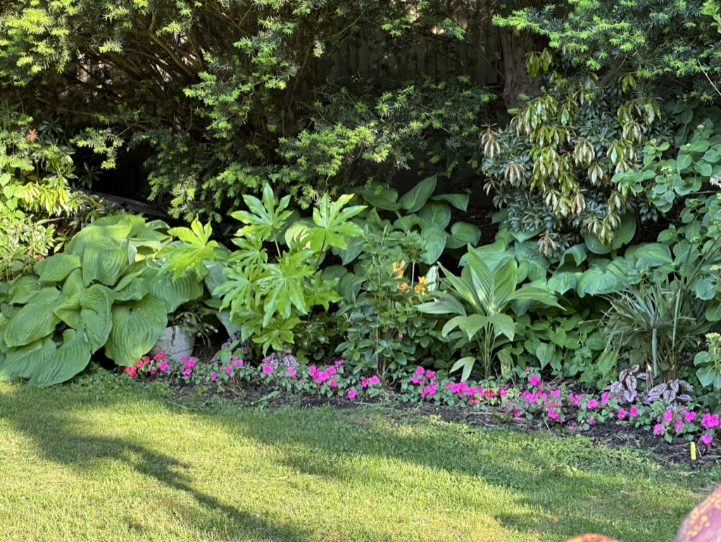 The Ensete in the front yard is growing the fastest. There's still a little work to do here.