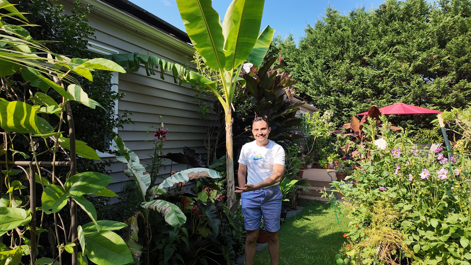 Pics of my "tropical" New York City yard. I am in a USDA gardening zone 7 and I use plants that are hardy to our winters, are easy to overwinter indoors, or use as annuals to get the tropical look this far north. Please ask for my permission and give me credit if you use any of my pics! Thanks for looking!